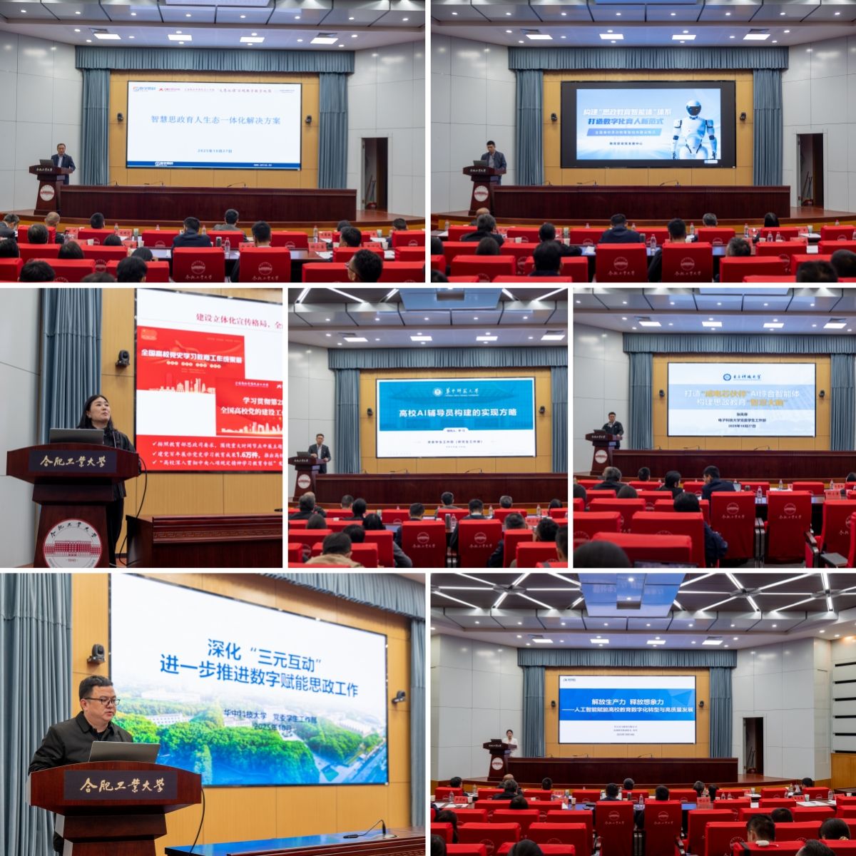 在“智汇思政 育见未来”创新发展论坛上,中教华影电影院线股份有限公司副总经理李永亮,教育部易班发展中心主任、易班总裁朱明伦,全国高校思政网副主任王慧敏,华中师范大学党委学生工作部副部长、思政处处长李刁,电子科技大学学生工作处副处长张凤寒,华中科技大学党委学生工作部副处长靖咏安,科大讯飞高教研究院副院长徐雪,聚焦全国高校思政教育智能体建设、智慧思政育人生态、高校AI辅导员建设探索与实践等方面作专题报告。