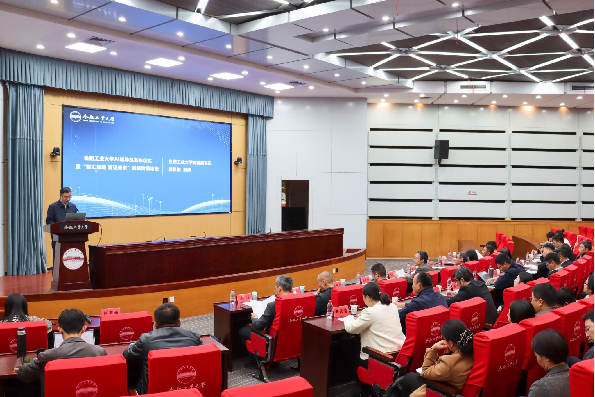 10月27日,合肥工业大学AI辅导员发布仪式暨“智汇思政 育见未来”创新发展论坛在屯溪路校区学术会议中心成功举办。中教华影董事长、教育部中国大学生在线、全国高校思政网主任王卫权,校党委副书记胡笑旋,教育部易班发展中心主任、易班总裁朱明伦,科大讯飞安徽大区执行总经理徐军等出席仪式。