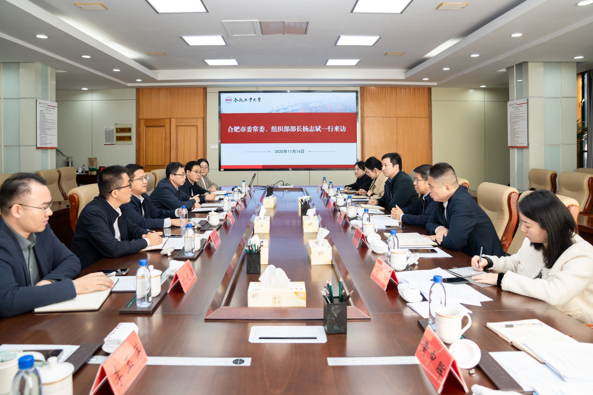 杨志斌对合肥工业大学建校80年来在人才培养、科学研究以及服务地方经济社会发展方面作出的突出贡献给予高度评价。他介绍了合肥市在吸引高层次人才落地、优化产业配套环境等方面的系列举措与政策支持。他表示,合肥工业大学是合肥市宝贵的人才库和智力资源高地,市委、市政府将一如既往地全力支持学校的高层次人才队伍建设。希望双方进一步拓展合作领域,创新合作机制,共同构建人才引育、资源共享、成果转化的高效平台,实现双向赋能、互利共赢,为合肥市的产业发展和科技创新注入更加强劲的动力。