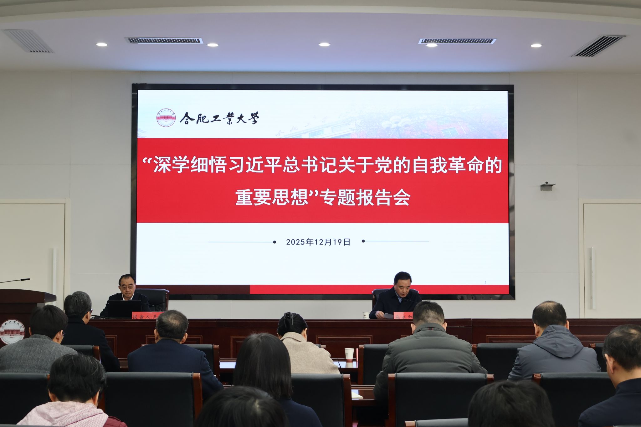 12月19日,中国人民大学学术委员会委员、纪检监察学院学术委员会主任吴付来教授应邀来校,作题为“深学细悟习近平总书记关于党的自我革命的重要思想”的专题报告。报告会由校党委副书记、纪委书记施永红主持。