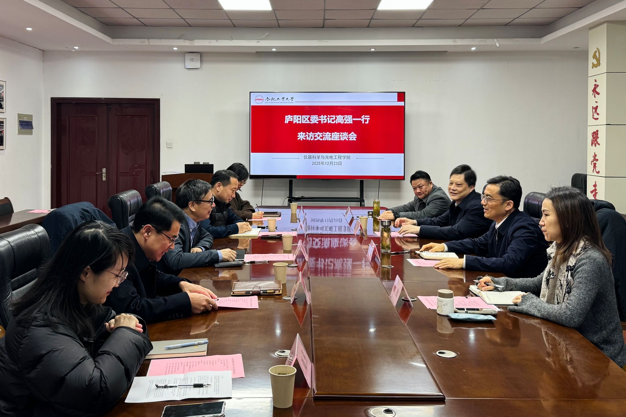 12月23日上午,合肥市庐阳区委书记高强一行来校交流,副校长丁立健出席座谈会。
