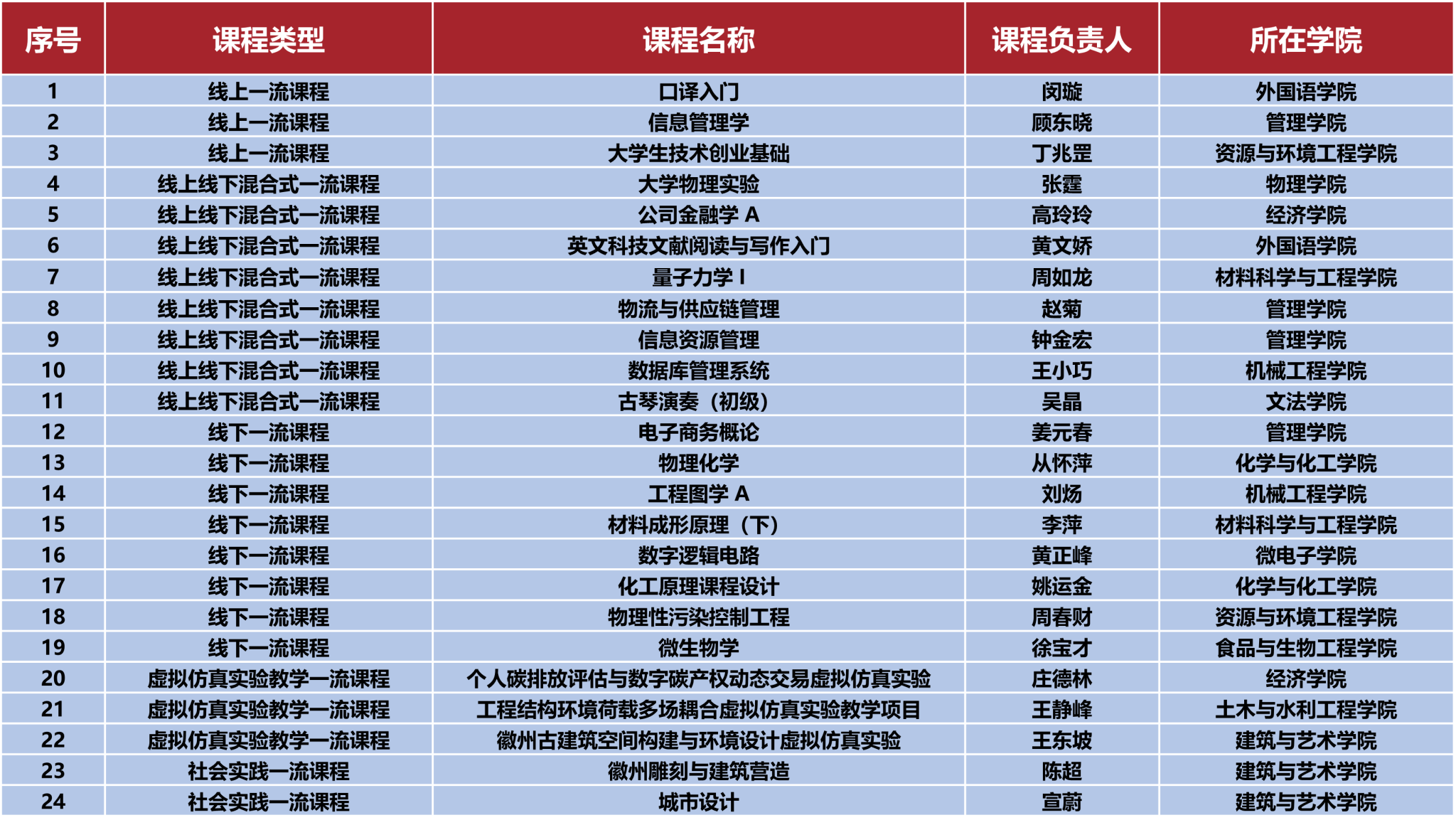 近日,教育部公布第三批国家级一流本科课程认定结果,合肥工业大学24门课程被认定为国家级一流本科课程,获批数量在安徽省内高校中位居首位,在全国高校中与电子科技大学、湖南大学、天津大学并列第31位。目前,我校累计获批50门国家级一流本科课程,为本科教育教学质量的稳步提升奠定了坚实基础。