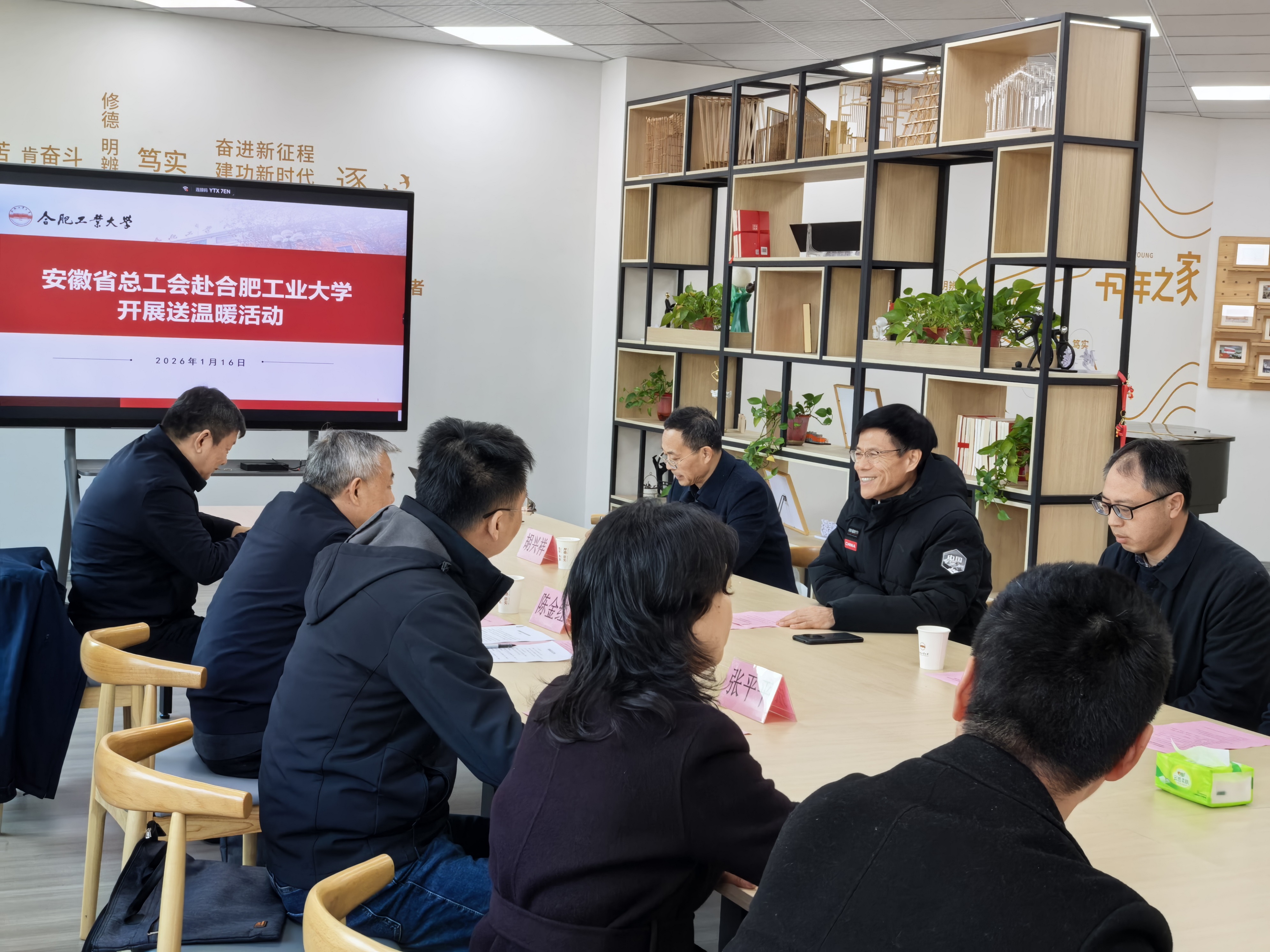 1月16日上午,安徽省总工会党组成员、副主席陈金红,安徽省总工会二级巡视员、省教科文卫体工会主席吴海明一行,来校慰问劳模先进代表和一线教职工代表,校党委常委、副校长季益洪参加慰问。