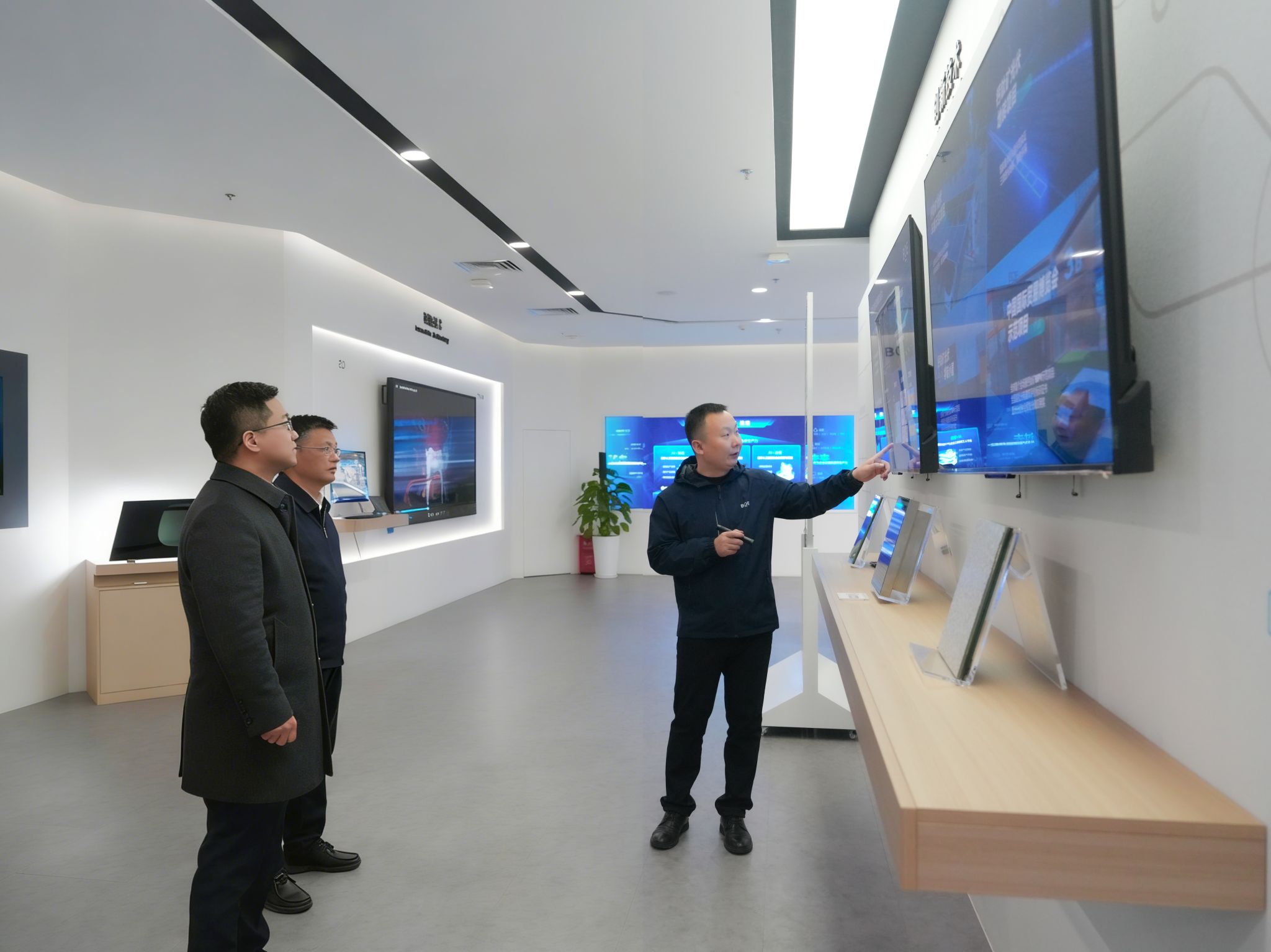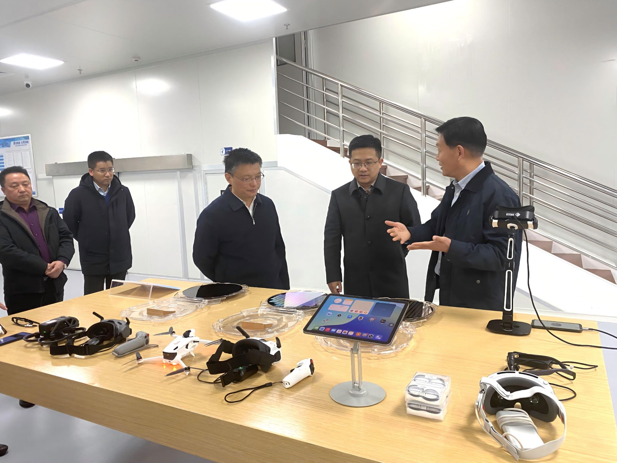调研期间,汪萌一行深入园区产业发展一线,实地考察了京东方、视涯科技等区内龙头企业。调研组详细了解了企业前沿创新产品研发历程、技术创新及产线建设等情况,体验了相关产品的场景应用,对企业雄厚的研发实力和产业化能力表示赞赏。