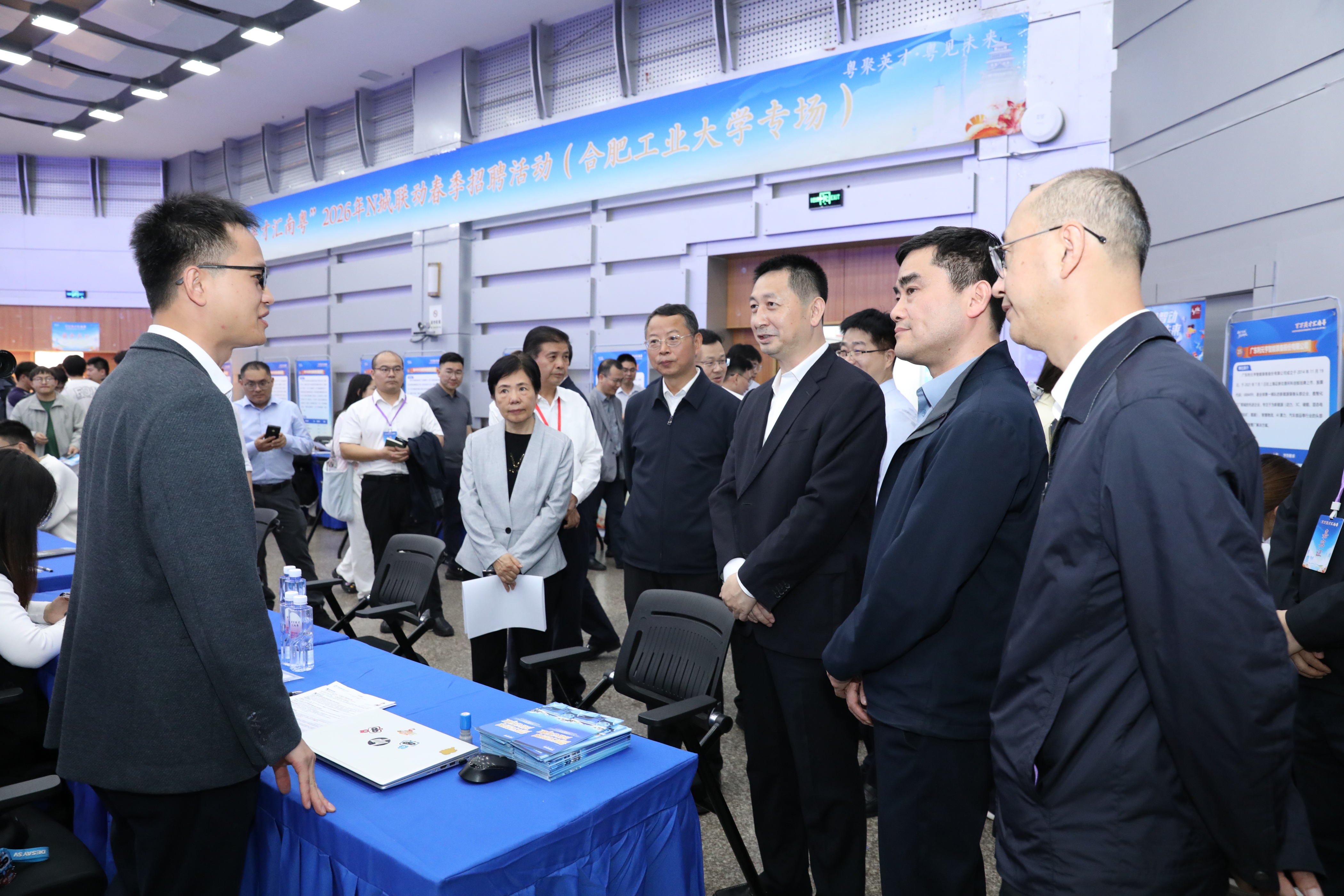 会后,刘吉一行前往招聘会现场巡馆并参观合工大-蔚来智能网联车辆实验室和电能高效高质转化全国重点实验室。