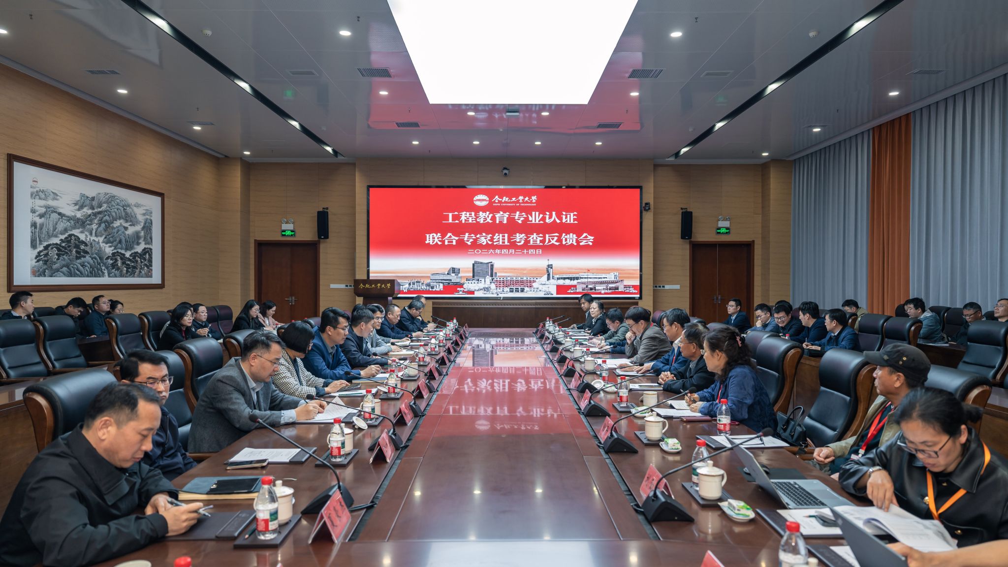 4月24日下午,现场考查反馈会上,联合组长周琪首先代表专家组反馈了总体考查意见,对学校及三个专业在认证理念落实、教学改革探索等方面取得的成效给予了肯定。随后,李庆领、苏涛、刘向东分别针对能源与动力工程、电子科学与技术、光电信息科学与工程专业,结合各自小组的考查重点,从培养目标与毕业要求的达成、课程体系对能力的支撑、师资队伍建设、质量保障机制运行等方面,指出了存在的主要问题,并提出了富有建设性和针对性的改进建议。
