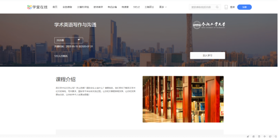 5月15日,外国语学院慕课课程《学术英语写作与沟通》在“学堂在线”平台正式上线。