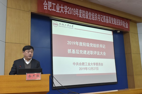 12月27日上午,学校2019年度院级党组织书记抓党建述职评议会在学术会议中心大报告厅举行。教育部直属高校党建联络员闵铁军,安徽省委教育工委组织干部处处长李方泽,部分校领导,有关职能部门负责人,部分“两代表一委员”、学院院长、基层党员干部和教师代表,各院级党组织书记参加会议。会议由校党委书记余其俊主持。