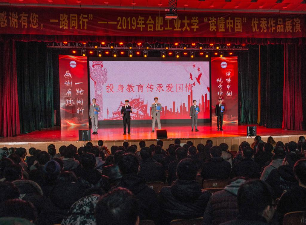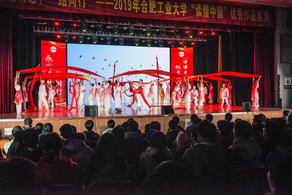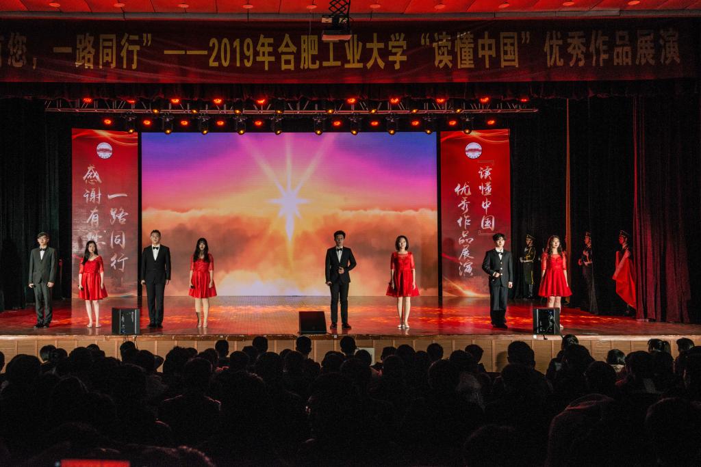 12月18日晚,“感谢有您,一路同行”——2019年合肥工业大学“读懂中国”优秀作品展演在屯溪路校区斛兵礼堂举行。校党委书记余其俊、党委副书记陈刚、相关职能部门和学院负责同志与近千名师生观看了作品展演。