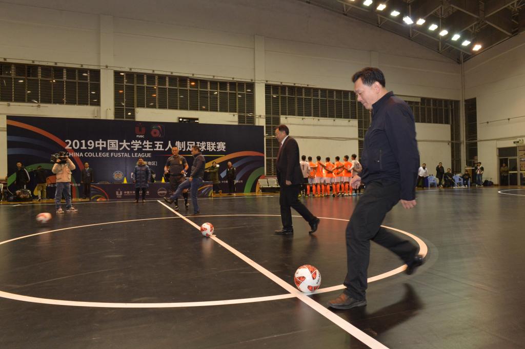 中国大学生体育协会副主席张磊,中国大学生体育协会足球分会主席、同济大学副校长雷星晖,合肥工业大学党委常委、副校长陈鸿海,安徽省教育厅体卫艺处处长卢鹏,中国大学生体育协会足球工作部副主任赵俊杰,中国大学生体育协会足球分会秘书长游松辉,安徽师范大学体育学院院长席玉宝,中国大学生体育协会足球分会5人制委员会主任曾吉,本次大赛比赛监督李晓峰,本次大赛裁判长金晶出席联赛开幕式。体育部主任柴业宏主持开幕式。