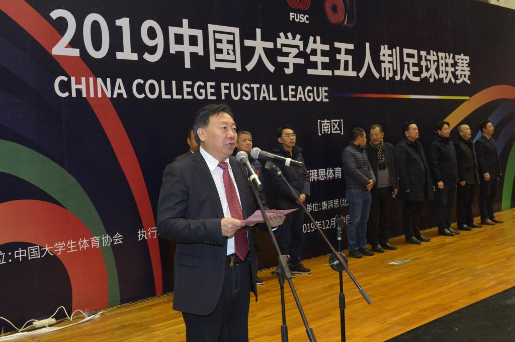 雷星晖在致辞中表示,中国大学生五人制足球联赛自2004年创办以来,活动内容丰富,参与热情高涨,对推进校园足球发展、提高校园足球水平、促进校园足球交流具有重要意义。他预祝各代表队在比赛中坚韧顽强、拼搏进取,发挥最佳竞技水平,以最好的成绩为2019年画上圆满的句号,在合肥工业大学留下美好的回忆。
