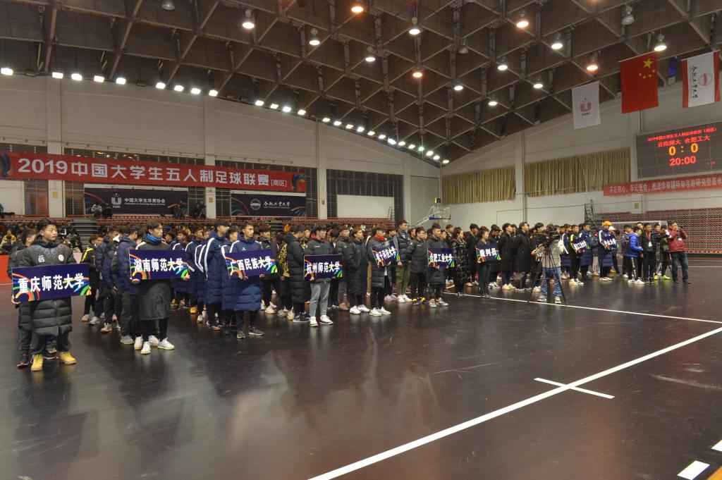 12月18日,由中国大学生体育协会主办,我校承办的2019中国大学生男子五人制足球联赛(南区)在翡翠湖校区体育馆拉开帷幕,来自电子科技大学、广西民族大学、杭州师范大学、湖南师范大学、云南师范大学、浙江工业大学、中山大学、重庆师范大学、东华大学、华东政法大学、华侨大学、合肥工业大学12支代表队、149名优秀足球健儿将进行为期六天的角逐。