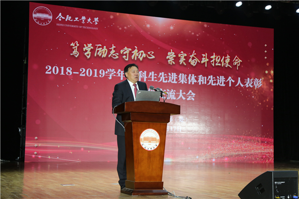 12月17日晚,合肥校区2018-2019学年先进集体和先进个人表彰暨经验交流大会在斛兵礼堂举行。党委常委、副校长陈鸿海,党委学生工作部等职能部门相关负责同志,各学院党委副书记、辅导员老师以及800多名学生代表参加大会。大会由党委学生工作部副部长(主持工作)钟小要主持。