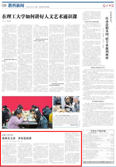“以支部为依托,以课程为载体,以课堂为主渠道,学校把教师党支部建设成为推进课程思政的战斗堡垒,实现专业课教学价值性和知识性相统一,潜移默化地影响学生的思想、行为和价值选择,达到润物无声的育人效果。”合肥工业大学党委书记余其俊说。