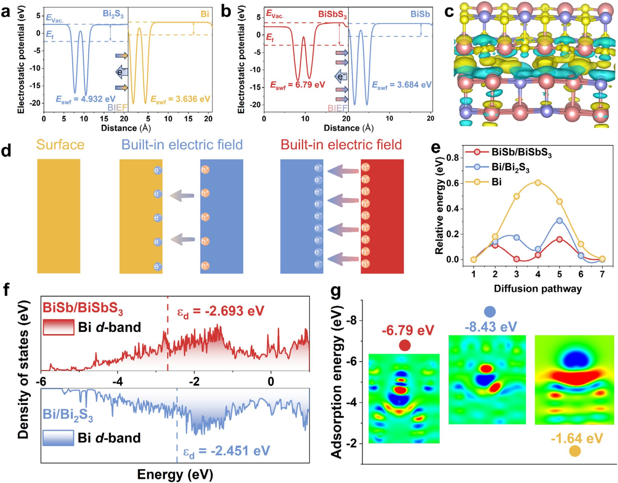 图2.对BiSb/BiSbS3异质结材料的密度泛函理论计算