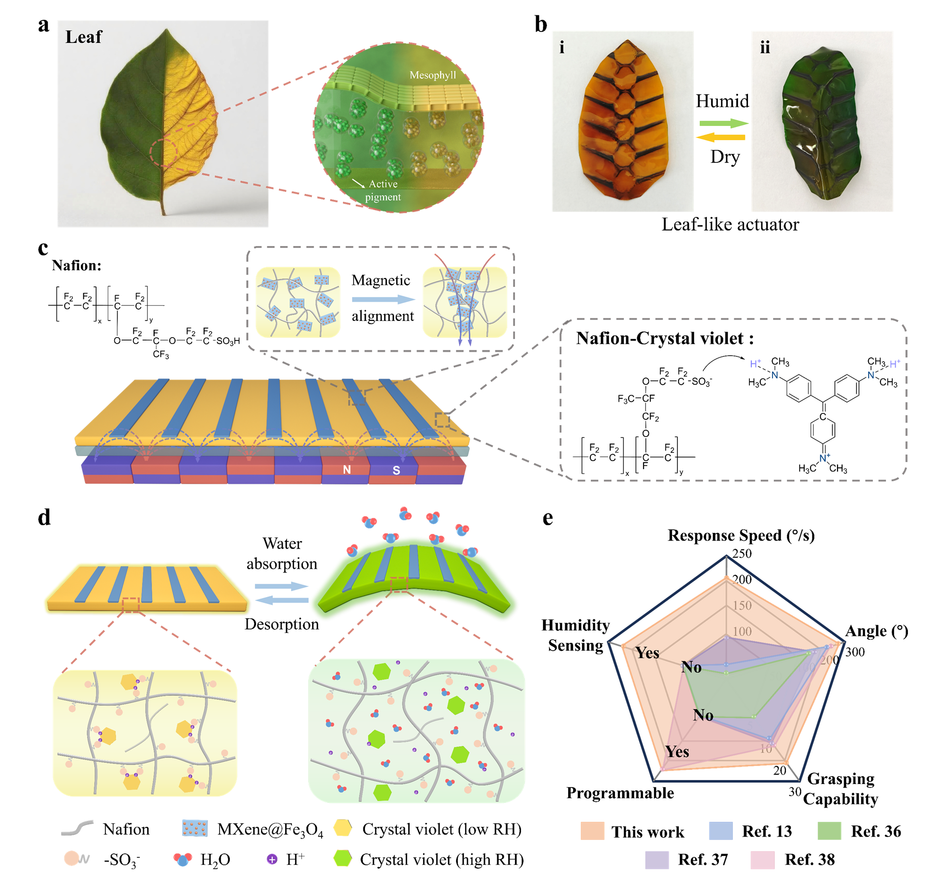 图1.叶片启发的可编程变形及湿敏变色驱动器的设计