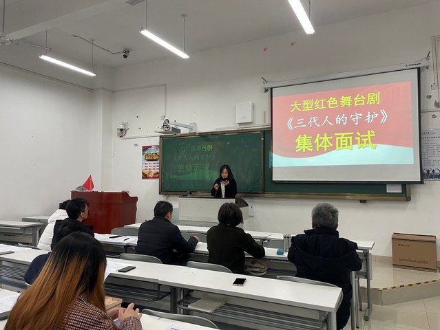2022年1月15日,文法学院相关教师对大型红色舞台剧《三代人的守护》主要演员进行集体面试,遴选了主要角色、旁白朗诵、群众、伴舞等演艺人员和宣传组、道具组、灯光组、舞蹈组等工作人员50余名。