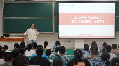 9月1日晚,经济学院在翠3教102面向2022级新生开展“奋进新时代,一起向未来”主题教育活动,学院2022级、2021级本科生辅导员及200余名新生参会。